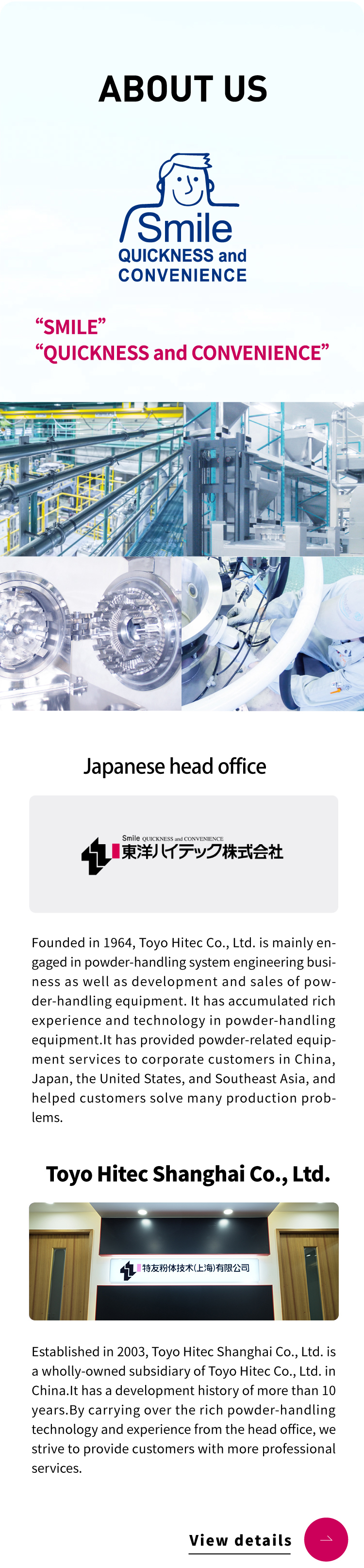 Please feel free to contact us if you want to know about the system configuration of powder-handling equipment or purchase powder-handling equipment.
